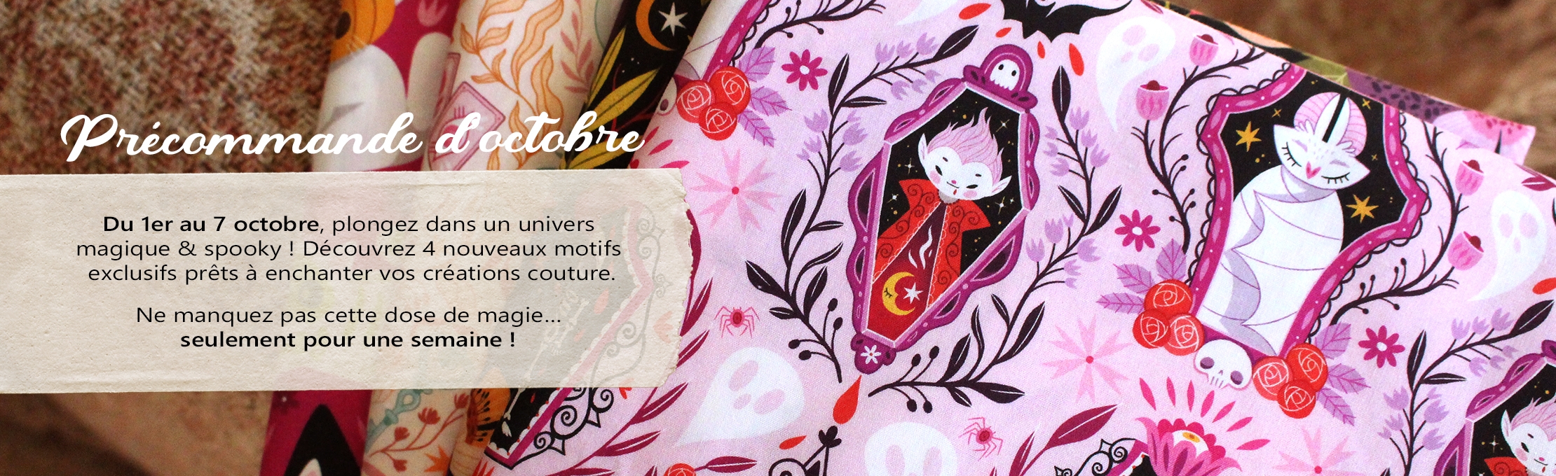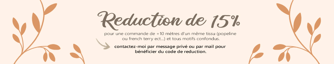 La précommande dure environ une semaine. Une fois terminée, je passe commande à mon fournisseur dès le lendemain. Après réception, je prends le temps de découper les rouleaux de tissus, préparer vos colis, puis j’effectue les envois environ 15 jours après la fin de la précommande.